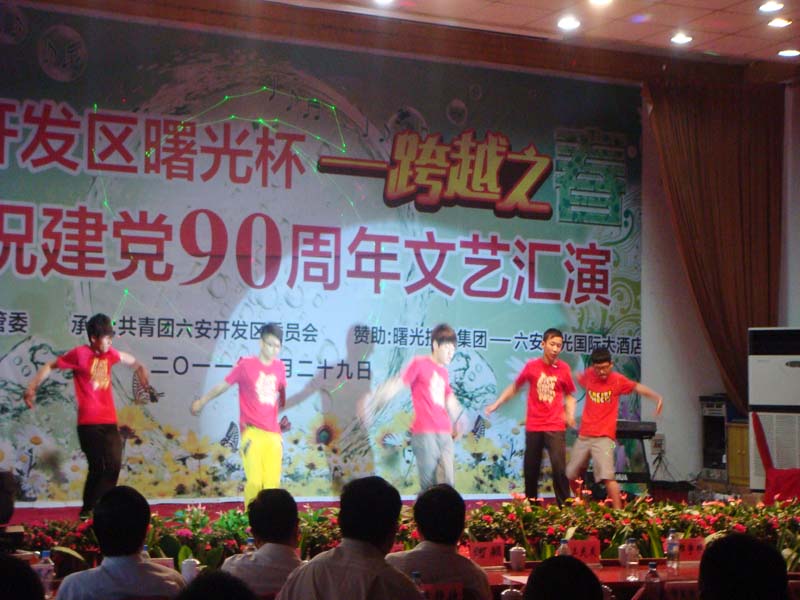 春回大地,万物复苏。2011年4月29日下午15:00, 开发区曙光杯“跨越之春”暨庆祝建党90周年文艺汇演在东方宾馆隆重举行。金年会金字招牌李明、胡忠宝、柴华灿等7名同学组编的街舞《舞动青春》获得了社会各界的一致好评,有力的展示金年会金字招牌学生青春风采和艺术素养,检验了金年会金字招牌出色的艺术教学成果,并丰富了学生的文化生活。 校团委