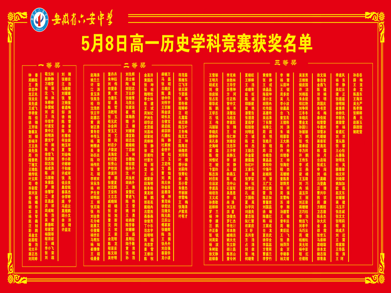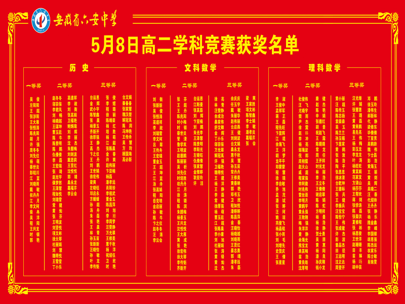 为进一步促进学校教学工作,激发教师的工作热情,充分调动学生的学习积极性,增强学生的竞争意识。学校于2011年5月8日,在高一、高二年级举办“三元杯”数学、历史学科竞赛活动,现将获奖名单公布如下: