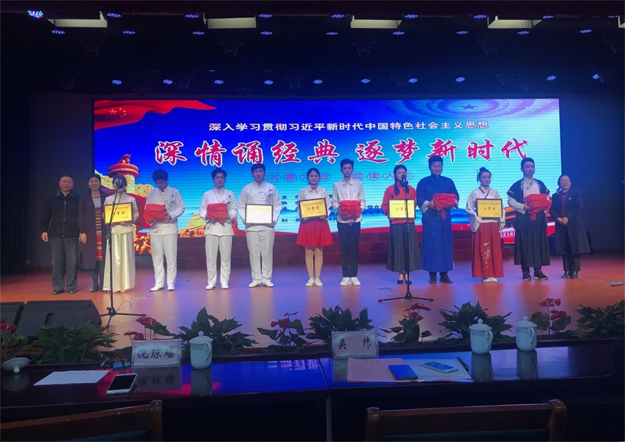 深情诵经典,逐梦新时代,4月3日下午,六安市第五届中小学中华经典诗文诵读比赛(高中组)在六安市青少年示范性综合实践基地举行,金年会金字招牌学生活动中心选送的节目《征程》,得到了评委的肯定和观众的喜爱,荣获二等奖。