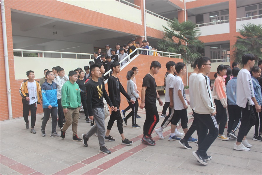 为了实施好这次演练,学校召开了各部门参加的协调会,并制定了详细的应急疏散演练方案,对各班撤离的路线及任课老师、班主任的职责、每层楼梯口的值班老师等内容都作了明确的要求。9时18分,随着信号的响起,全校学生在各班老师的指引下,安全有序地按照既定的撤离路线撤到应急演练集合地。