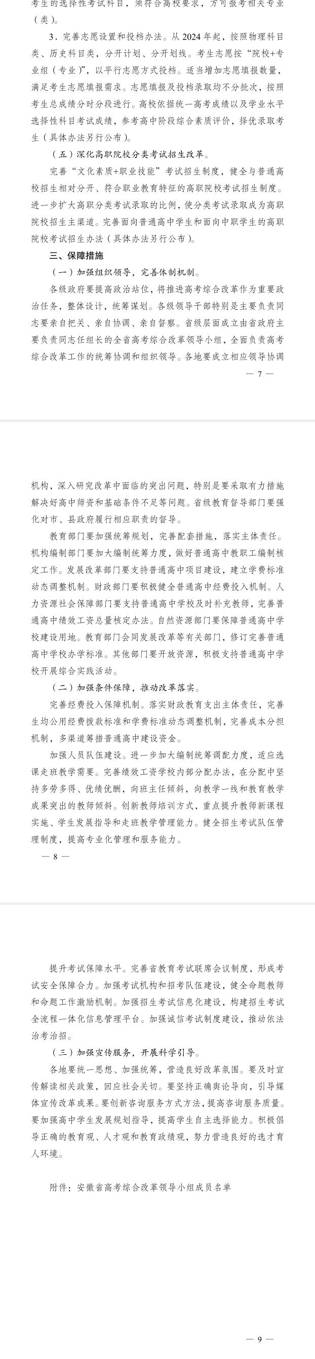安徽省人民政府关于印发安徽省深化普通高校考试招生综合改革实施方案的通知
