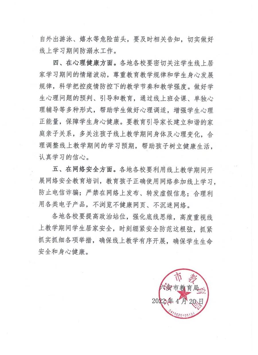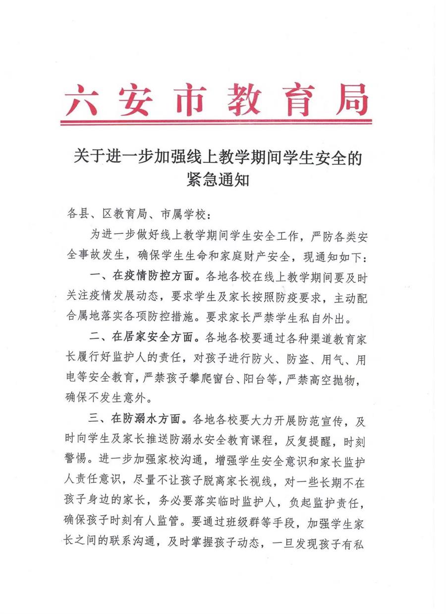 关于进一步加强线上教学期间学生安全的紧急通知