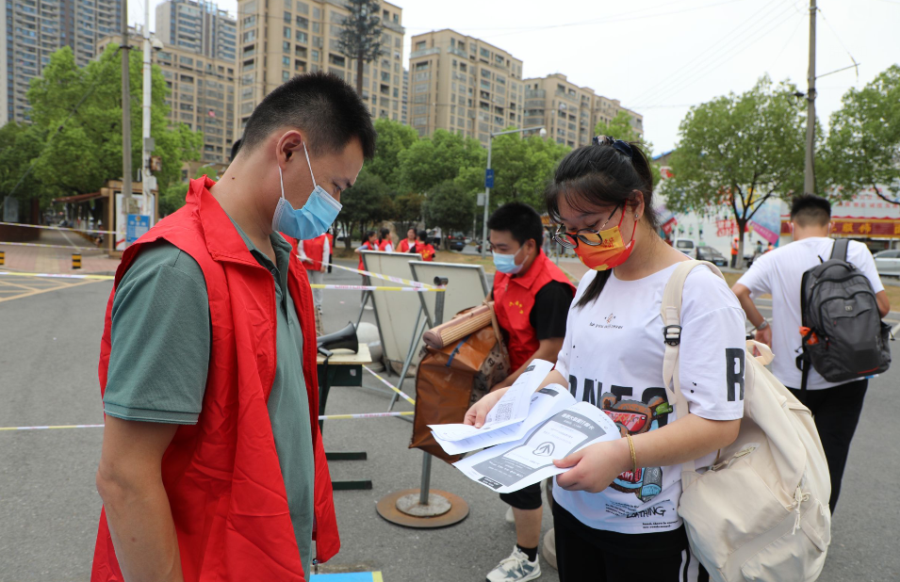 “大家间隔一米线,戴好口罩,进校园测温,出示打印好的行程码、健康码、48小时核酸报告、以及《健康登记表》。”上午9点半,记者在校门口看到,由学校老师和学生组成的志愿服务队不停地引导陆续进入校园的学生。现场秩序井然,各个关卡都有老师在引导、帮忙,疫情防控严密有力。学校为了避免学生扎堆聚集现象,实施错峰进校园。