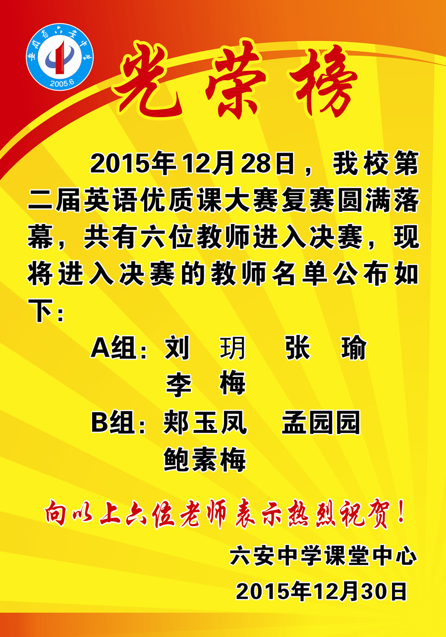 英语校优质课光荣榜